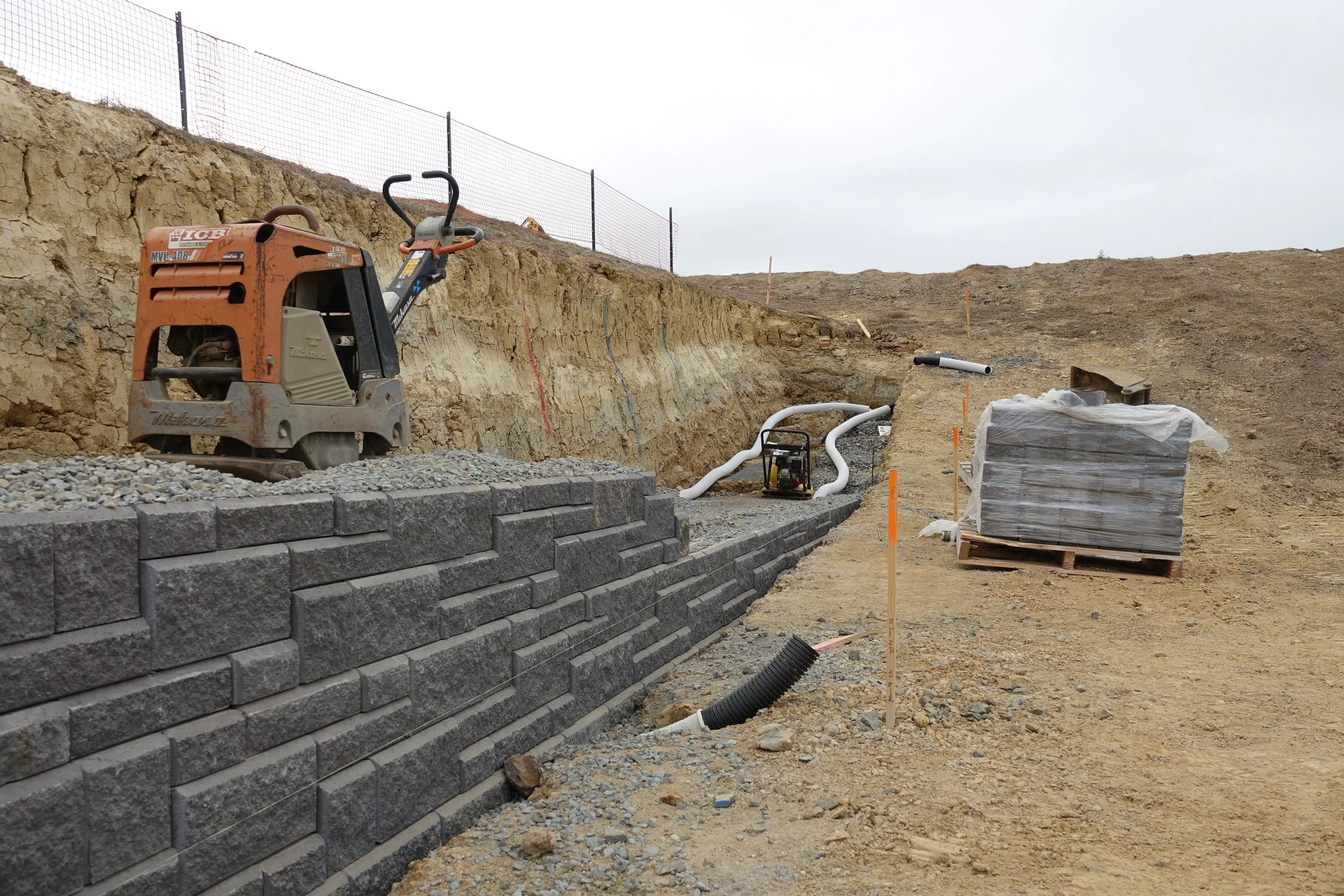 The completed retaining walls now form a key visual and structural feature of Bremner Ridge. The patterned finish elevated the subdivision’s design quality while reinforcing steep terrain against erosion and failure. Completed in just a few weeks, the project was a standout success in aesthetic retaining and an example of ICB’s adaptability and detail-oriented delivery.
