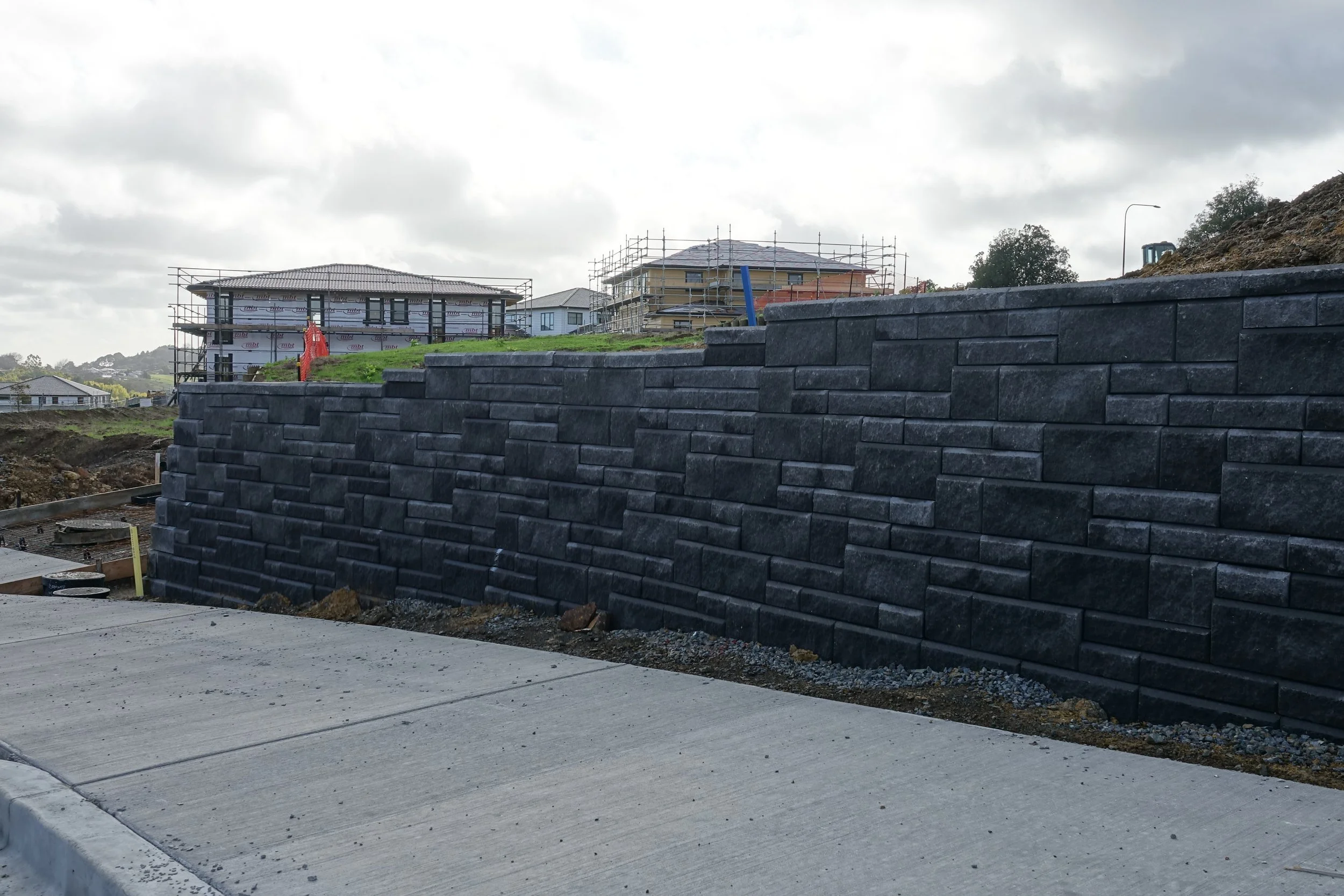 Bremner Ridge sits at the highest point in Flat Bush, a subdivision crafted to offer a countryside lifestyle within city limits. The first stage required retaining walls that were both structurally resilient and visually distinctive. The steep slopes and engineering constraints added complexity, and the visual standard set by these initial walls would carry forward into future stages.