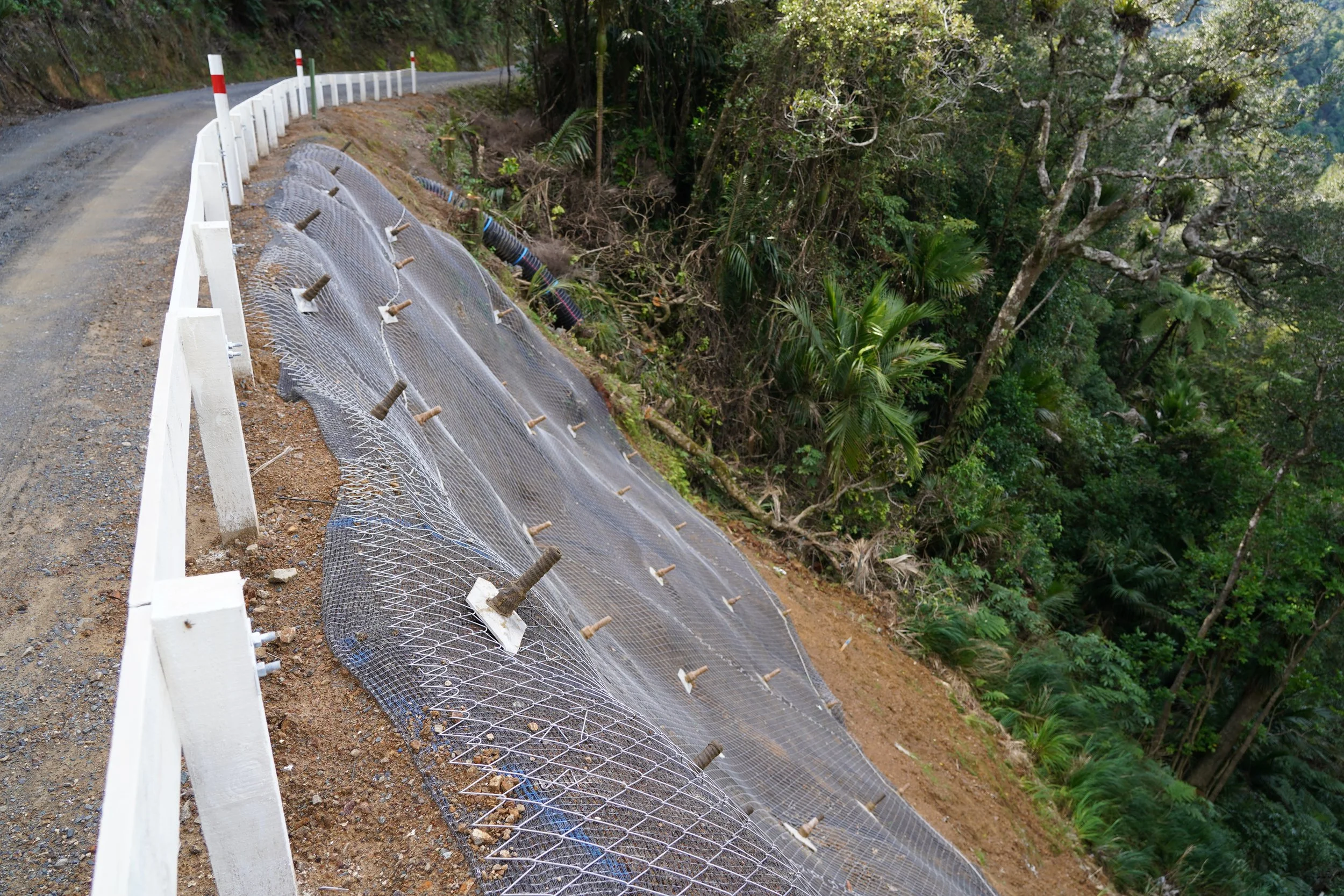 A traditional retaining wall would have required full road closure, large machinery, and up to six months of work—delays the area couldn’t afford. Instead, the team needed a practical, lower-impact solution that could be installed rapidly and safely, despite the risk of further slope failure.