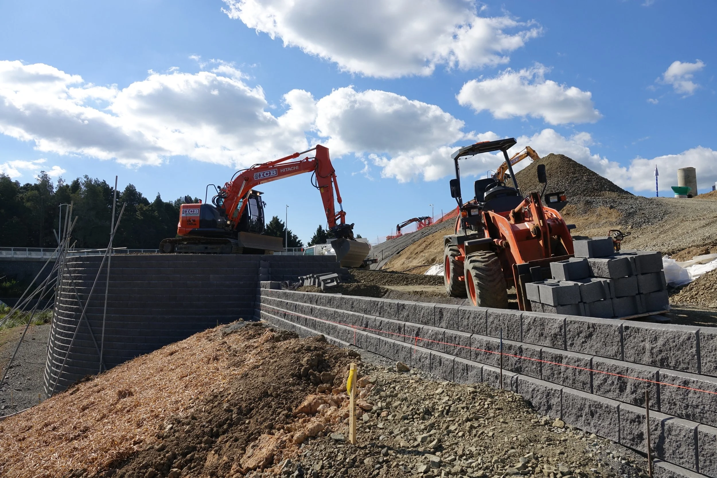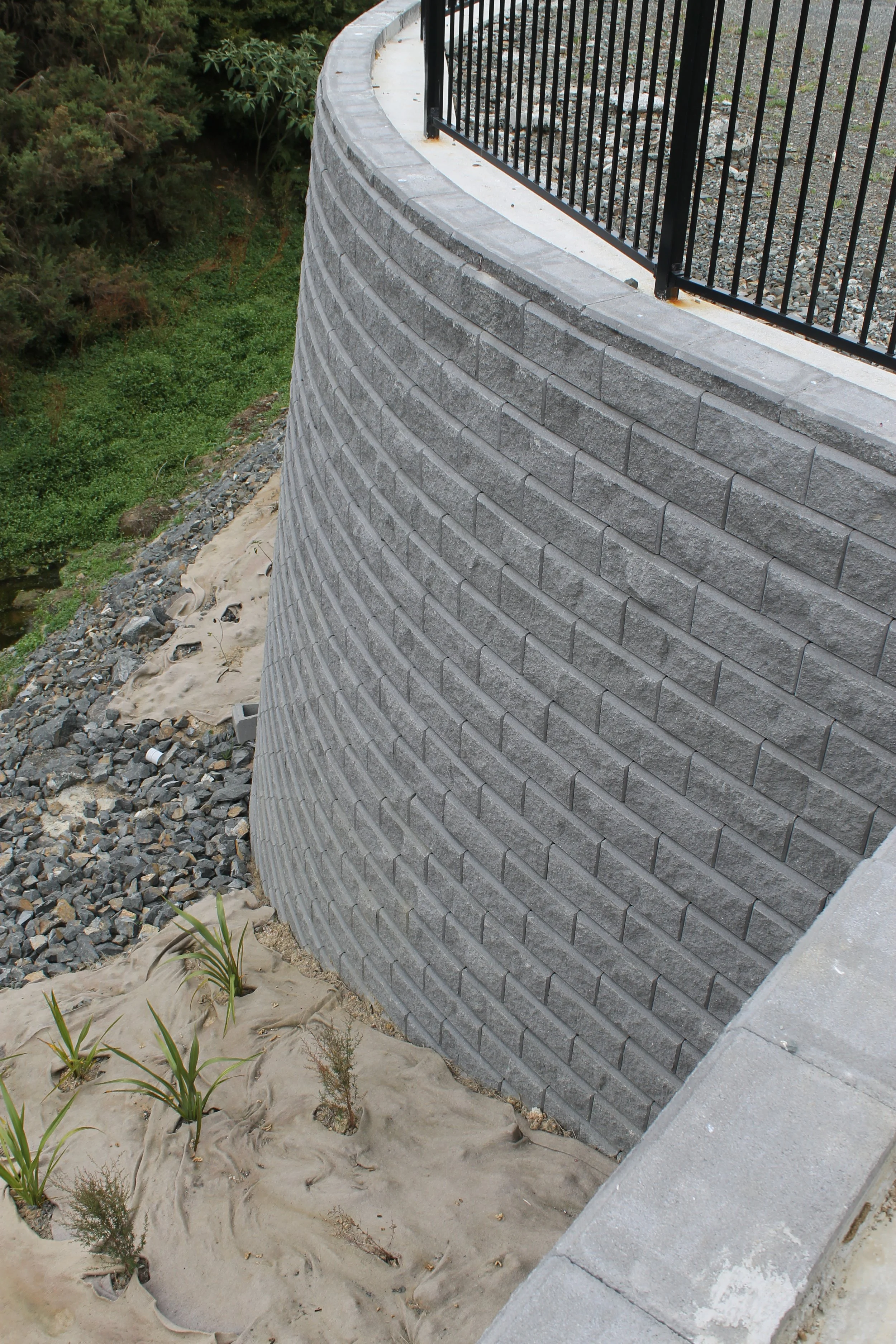 ICB’s engineering and construction teams, in collaboration with Cirtex, designed and refined three Allan Block walls tailored to the complex topography. The walls were constructed to an “at rest” configuration — enhancing stability and durability — and executed with impressive accuracy, achieving under 3mm deviation across a 50-metre span.